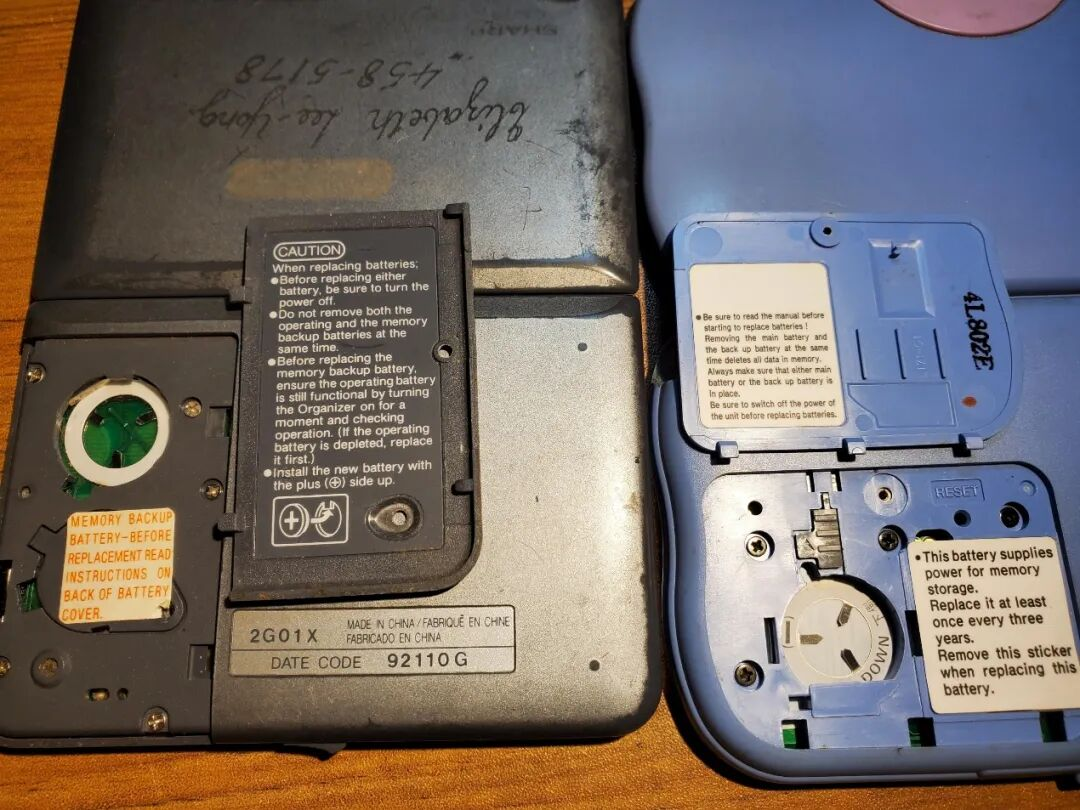 这两个都是90年代非常经典的电子记事本/掌上组织器(Electronic Organizer),当时算是一种很流行的“前智能手机”工具,主要给旅行者、学生或商务人士使用,功能比普通计算器丰富很多,但远不如今天的手机。