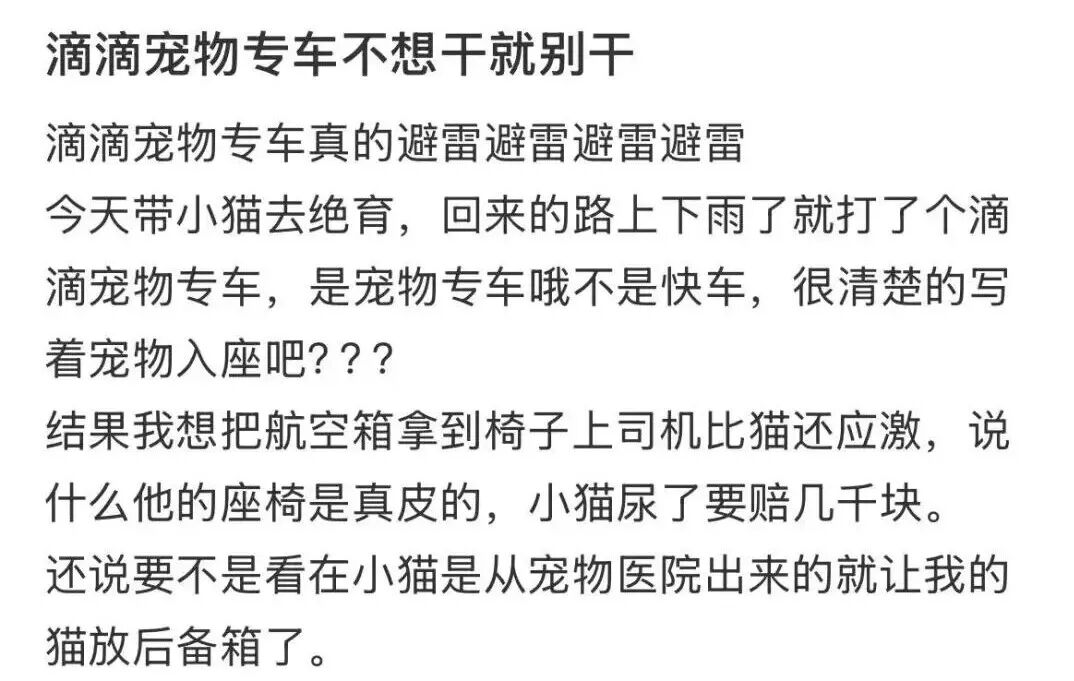 “明明打的宠物专车,司机却充满了嫌弃。“