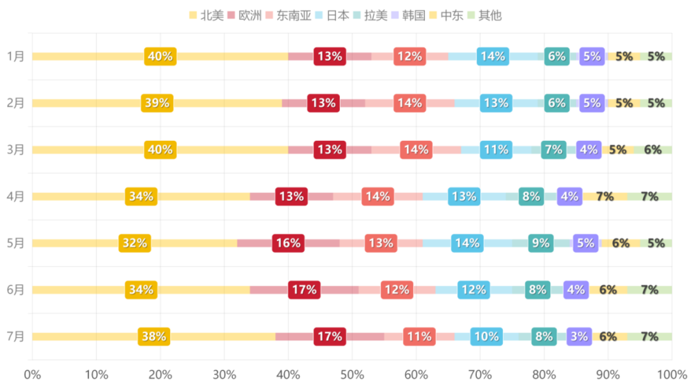 2025年1-7月TikTok出海短剧分市场收入占比