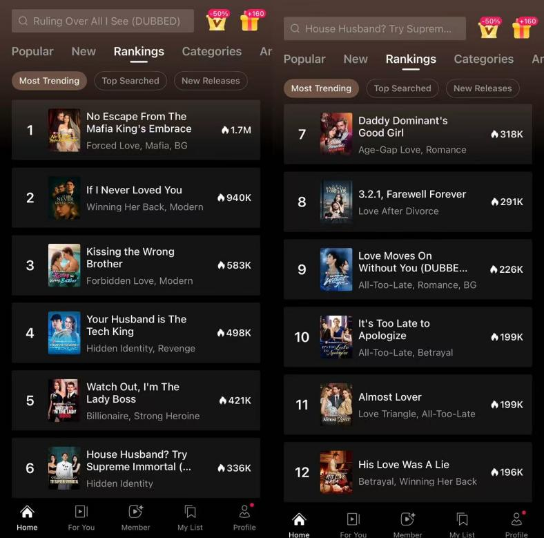 DramaBox短剧排行榜,前12有11部为本土剧