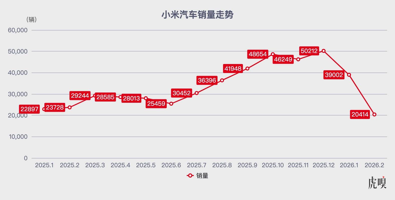 小米汽车在去年6月后迎来了一波销量上涨,这是得益于小米YU7的发布,但在10月的事故发生后,其销量也出现了回落;数据来源:易车