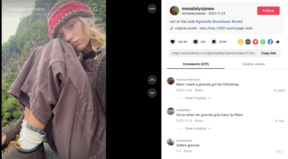 这一次被Z世代再次带火的,是以这个散发着谷物香气的健康食材为灵感命名的穿搭风格。它的核心拥趸是一群热爱阳光和自然的女生,她们把自己叫作Granola Girl。