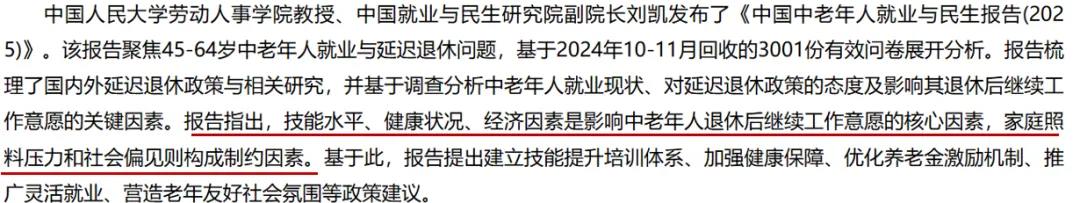 除了身体情况和经济情况,社会对老龄工作人员的偏见和歧视也是阻碍老年人就业的重要原因。