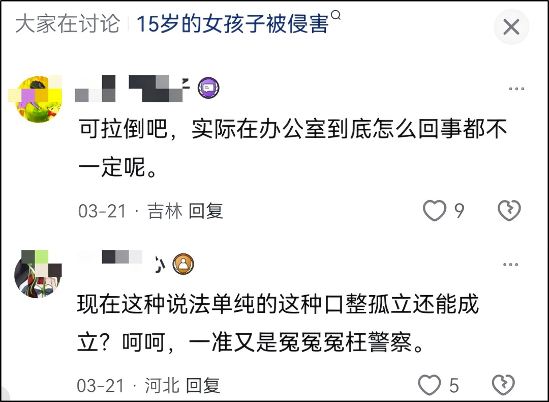后来,很多人直接觉得这是15岁女生在诬告。因为之前的强奸诬告案件让他们产生了逆反心理,碰到什么事都来一句,会不会又在冤枉男的?