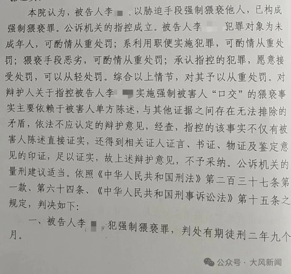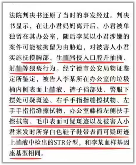 但是小君父母不认可这份判决,他们觉得判得太轻了。理由是,李某是公职人员,他侵犯的是未成年,还在派出所内,还做出“咬”等动作。