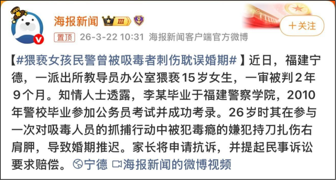 再比如知情人爆料,之前一次对吸毒人员的抓捕行动中,李某被犯毒瘾的嫌犯扎伤,导致婚期推迟。