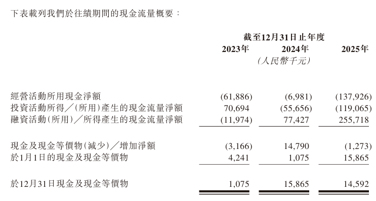 在利润表现方面,由于早期研发投入巨大以及赎回负债账面值的变动,公司在账面上依然录得净亏损,但亏损幅度逐年大幅收窄:2023年亏损9660万元,2024年收窄至2177万元,2025年进一步缩小至582万元。