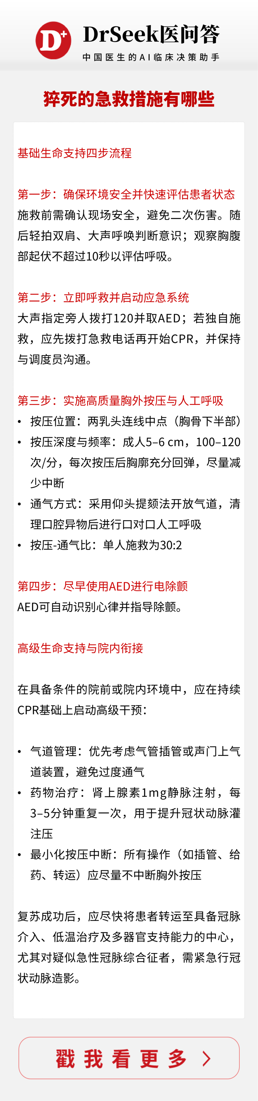 “心脏骤停的黄金抢救时间仅有4分钟,院外心脏骤停抢救成功率不足1%。出现任何心脏相关信号都需立即停止活动并就医。”杜茜说。