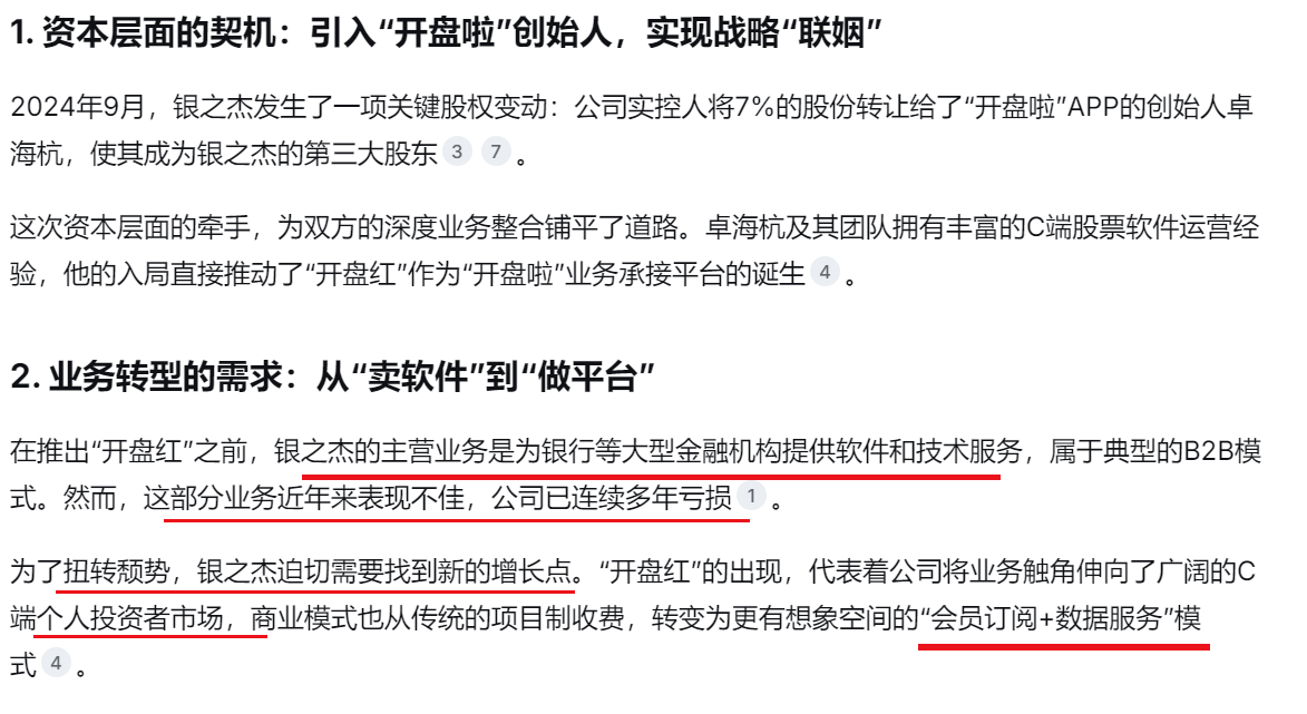 银之杰开发“开盘红”APP,核心是为了完成一次从B端金融IT服务商向C端AI金融平台的战略转型。