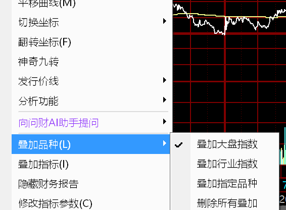 在K线图上点击鼠标右键,选择叠加大盘指数
