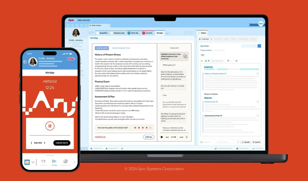 Abridge 已集成进 Epic,这是全美覆盖率 42% 的电子病历系统。问诊结束后,笔记几分钟内直接出现在 Epic 里。目前支持 55 个以上专科、28 种以上语言,包括对话中途切换语言、或有翻译介入的场景。