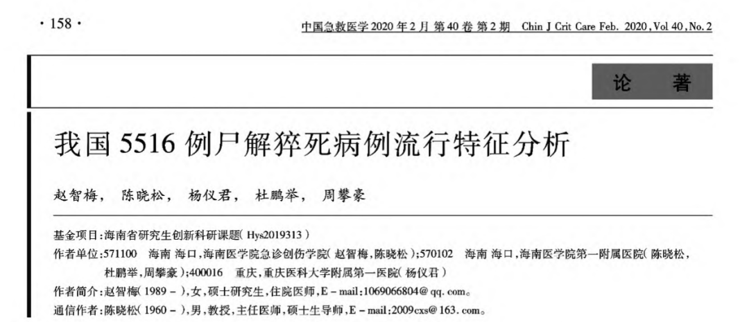 2020年,海南医学院的团队收集了全国5516例猝死尸检报告。