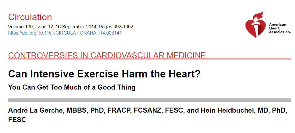 [11] La Gerche, A., & Heidbuchel, H. (2014). Can intensive exercise harm the heart? You can get too much of a good thing. Circulation, 130(12), 992–1002. https://doi.org/10.1161/CIRCULATIONAHA.114.008141