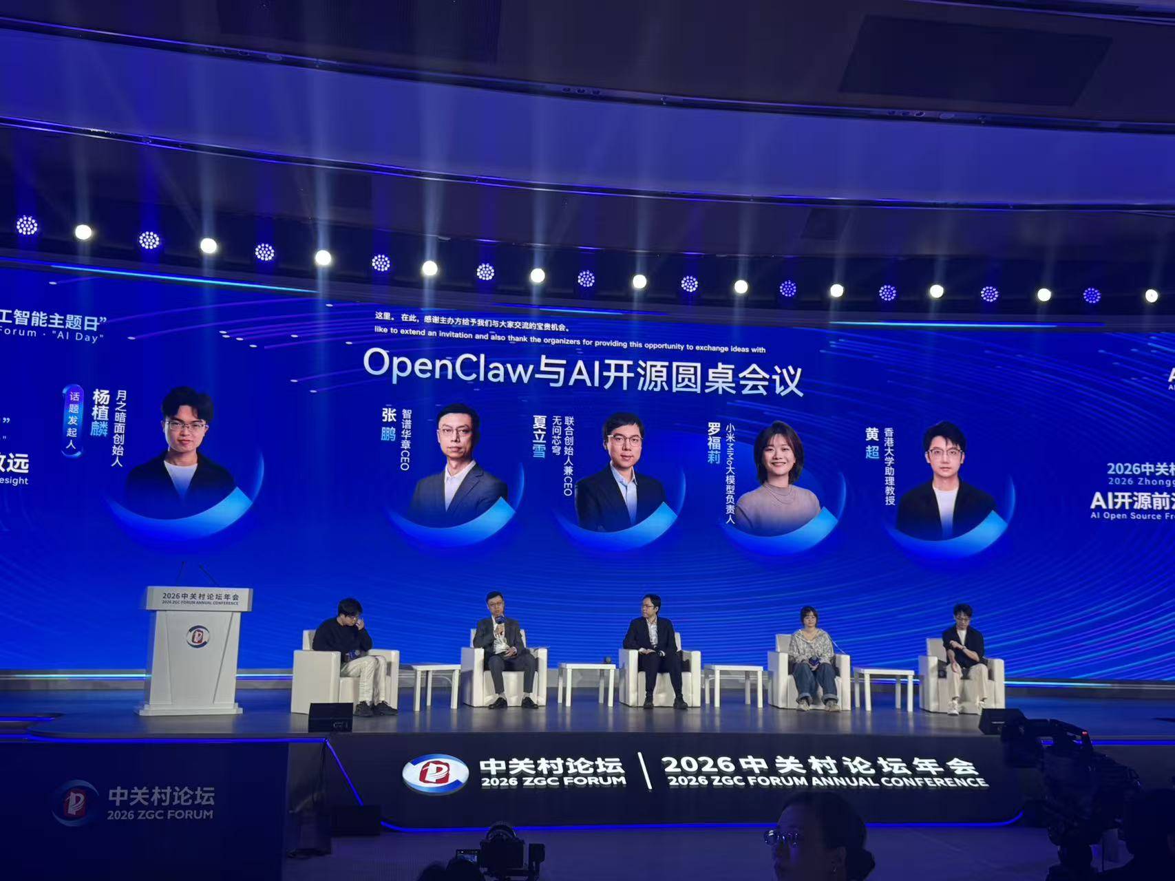 台上坐着的,是这一轮大模型浪潮中最核心的一批玩家:月之暗面创始人杨植麟、智谱CEO张鹏、无问芯穹创始人夏立雪、小米MiMo负责人罗福莉,以及香港大学助理教授黄超。