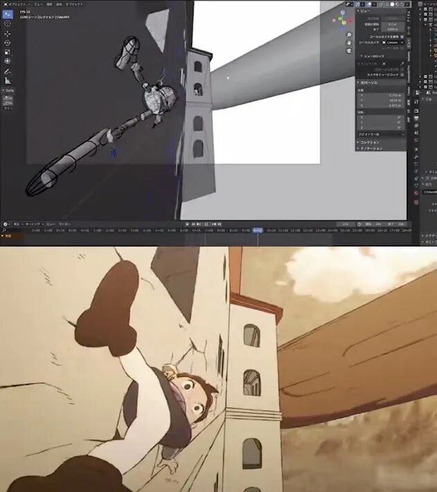 御所园翔太擅长利用3D技术辅助作画,并通过非常规的构图、背景动画与镜头运动来强化演出效果。