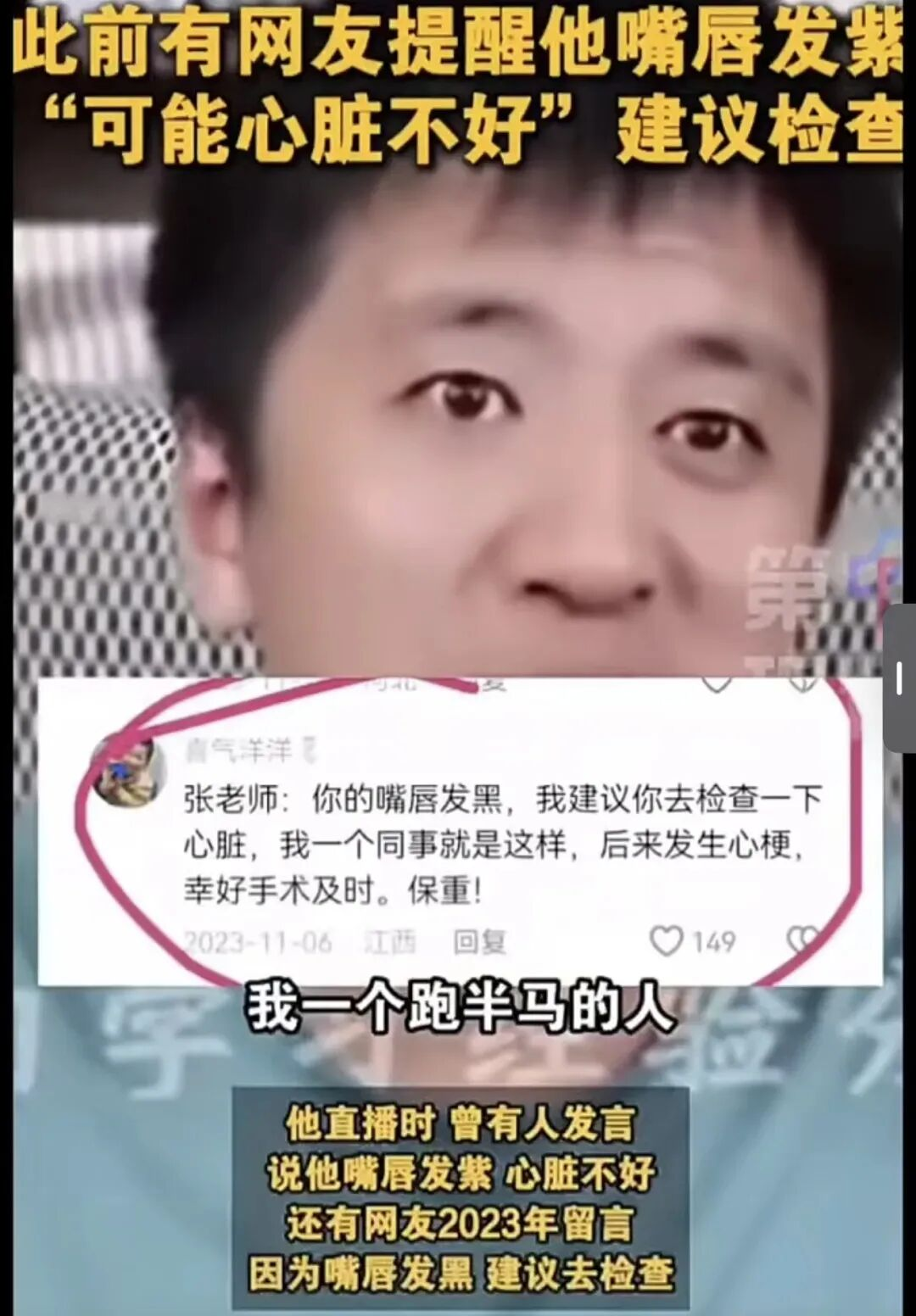 他去世后,有人整理出了他固执不听劝的一些截图。人家让他注意心脏问题,但他觉得自己跑马拉松的,心脏怎么可能有问题?即便真的住院了,也只以为“过度劳累”的临时性问题。他那种心态吧,老实说我感觉还挺似曾相识的,就跟我二三十岁时候一样,天不怕地不怕,觉得自己无所不能。