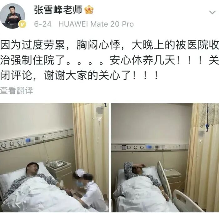 张雪峰去世时是42岁,而我早在19岁的时候就差点因为运动嗝屁。这件事儿我在《减肥100斤这事儿,我也干过》中详细写过,简单说来就是感冒时候强行锻炼导致了脑炎,引发幻觉、昏迷三周,两次被下发病危通知,也算是到鬼门关走了一遭——过度疲劳、该休息的时候不休息,任何年纪的人都可能因锻炼而死。