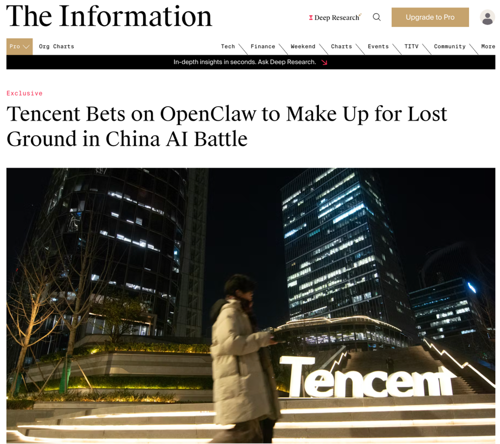腾讯高层的判断很清晰:OpenClaw引发的这一轮Agent浪潮,将是AI战场重新洗牌的机会。