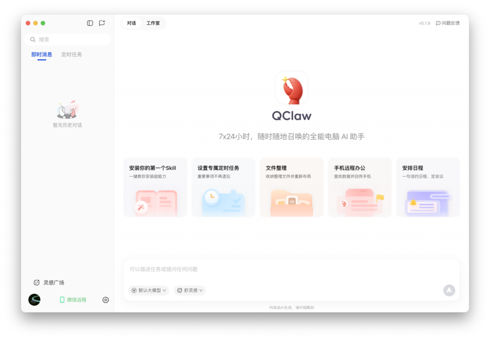 消费级产品打头阵。QClaw主打微信一键安装,面向普通用户;WorkBuddy走桌面端自研路线,强调安全可控;微信ClawBot负责让用户在微信聊天界面直接操控龙虾。