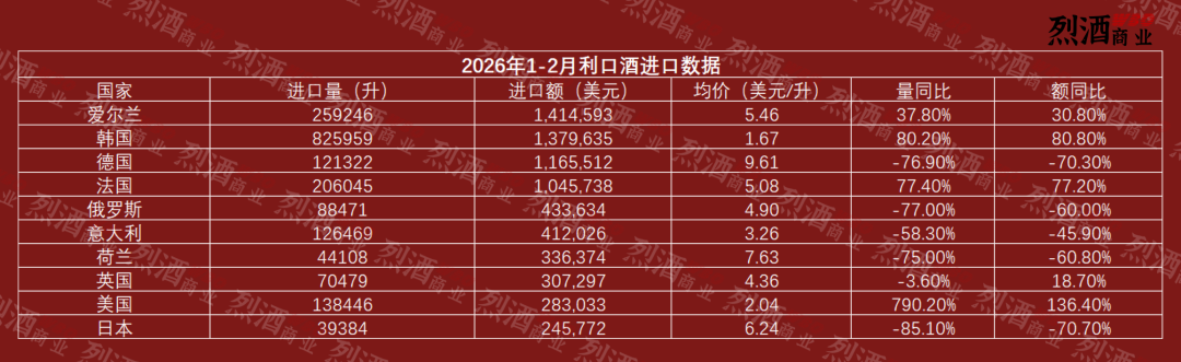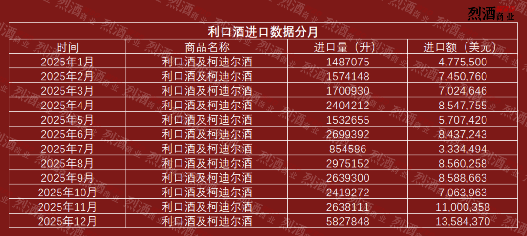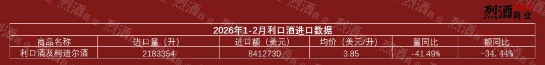 本文来自微信公众号: 烈酒商业 ,作者:WBO,原文标题:《进口量降幅超 40%,利口酒2026年开局为何大幅下滑?》