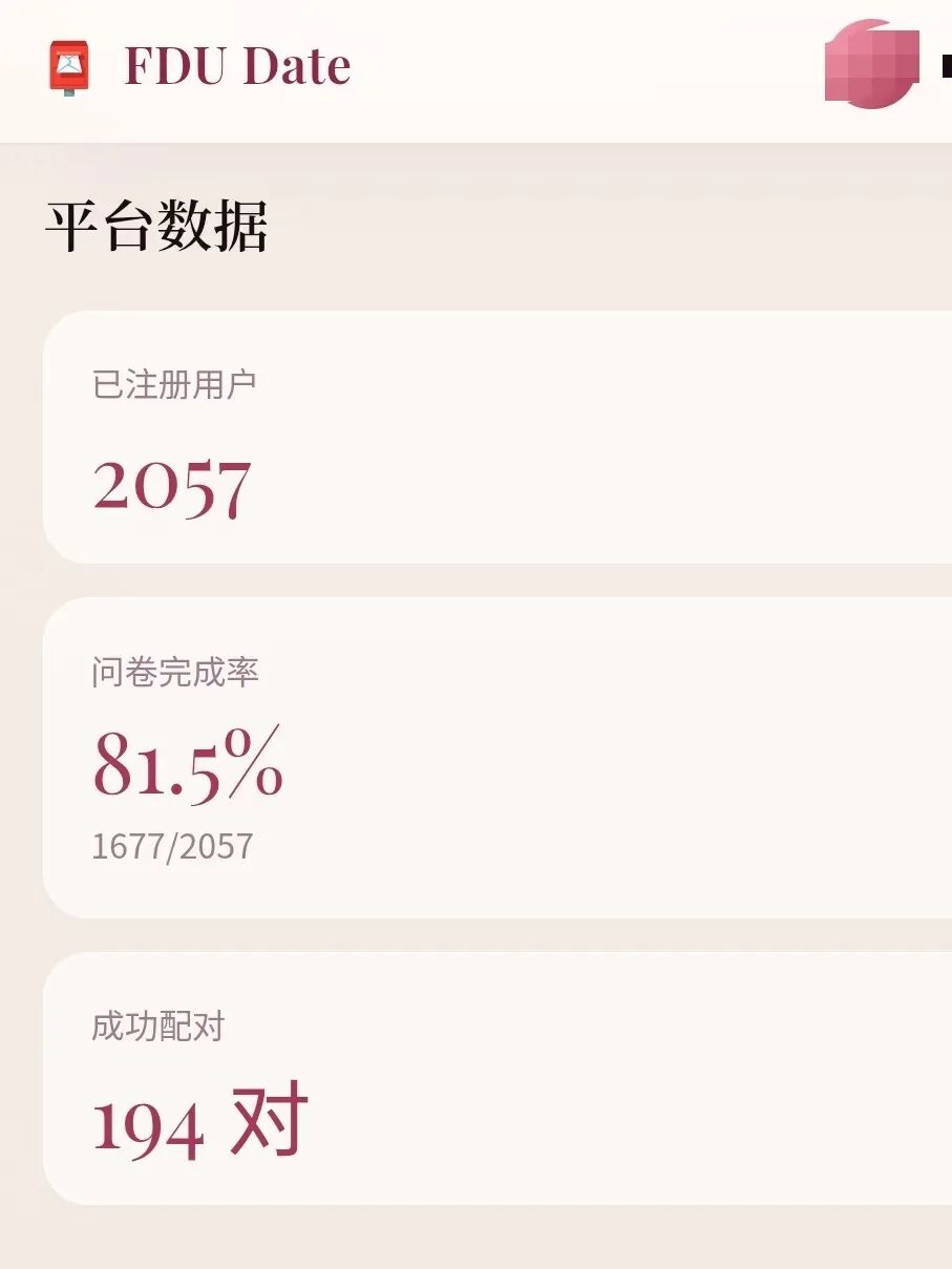 ▲截至3月30日,FDU Date平台上显示的匹配数据/图源:肖弈佳