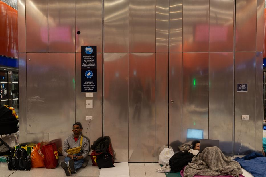 在以色列特拉维夫市中心的一处地铁站台,人们准备过夜(图源:新华社)