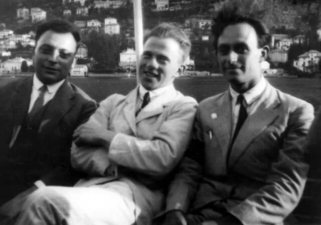 ▲1927年9月,在船上,从左往右分别为:泡利(邪恶栀子花)、海森堡(快乐小狗)和费米