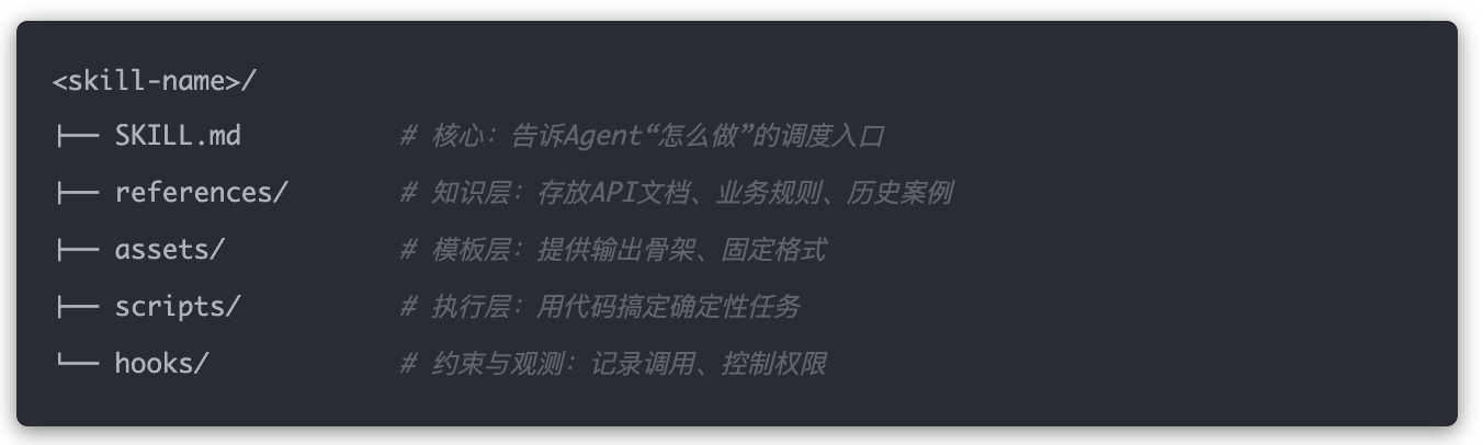 一个完整的Skill,本质上是一个能力包,它长这样:
