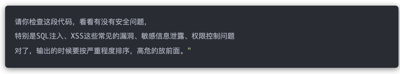 举个具体的例子。如果你想让AI帮你审查代码,用 Prompt 可能是这样: