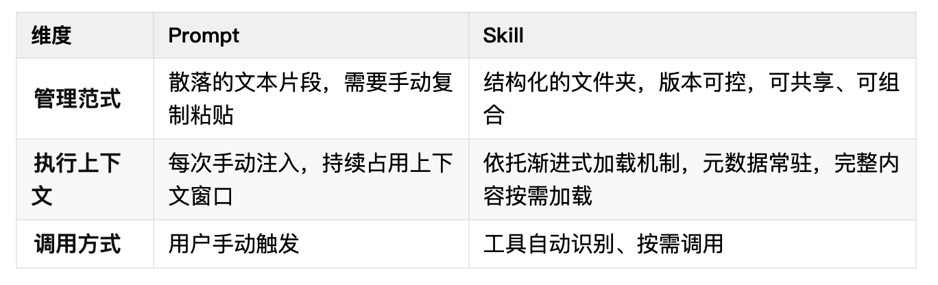 Skill 最终表现为 Prompt,但它并不是从 Prompt 开始设计的。