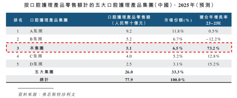 如今的参半,已是口腔护理行业不可忽视的新锐力量。以2025年的零售额计,参半以6.5%的市场份额位列行业第三,线上市场份额达8.0%,位居第一。