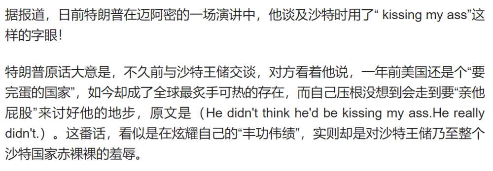 3、特朗普公开羞辱沙特王储小萨勒曼