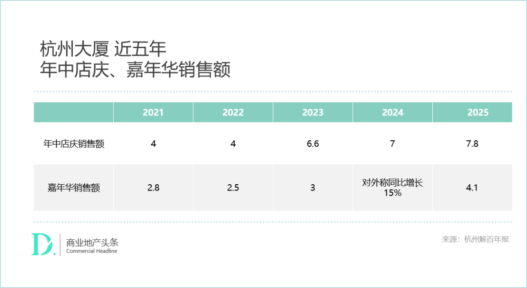 作为杭州第一代“百亿店王”,杭州大厦从不缺话题与流量。‌2025年年中庆,6天总销售额约‌4.2亿元‌,同比增长37.45%,单笔高珠订单达550万元;今年3月春季嘉年华‌,‌3天销售额突破5亿元‌,同比增长16%‌……