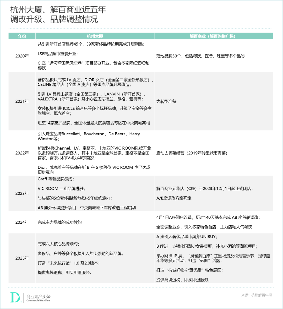 行至2024-2025年,杭州大厦全力投入品牌维护,经过多轮谈判,成功完成六大主力奢侈品牌的续约,并在2025年第二季度成功续约国际顶奢品牌启动重装扩店升级计划。