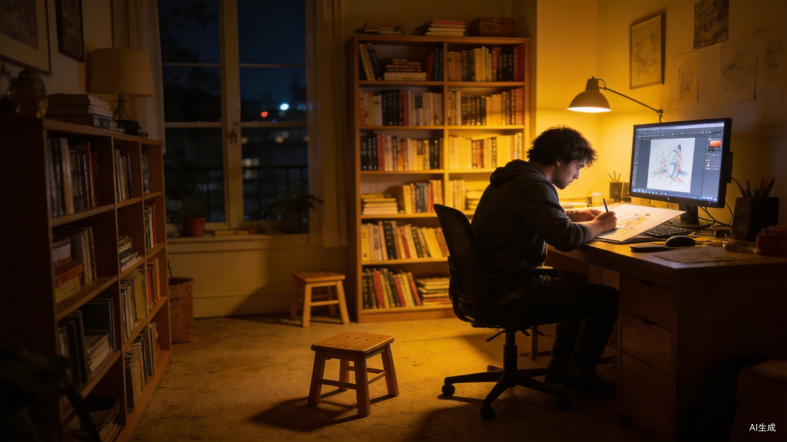 他看到的可能只是一个很具体的画面:有个大人,下班回家以后,没有只躺着刷手机,也没有一边抱怨生活一边耗到睡觉,而是坐在电脑前,很认真地做一件自己喜欢的事。