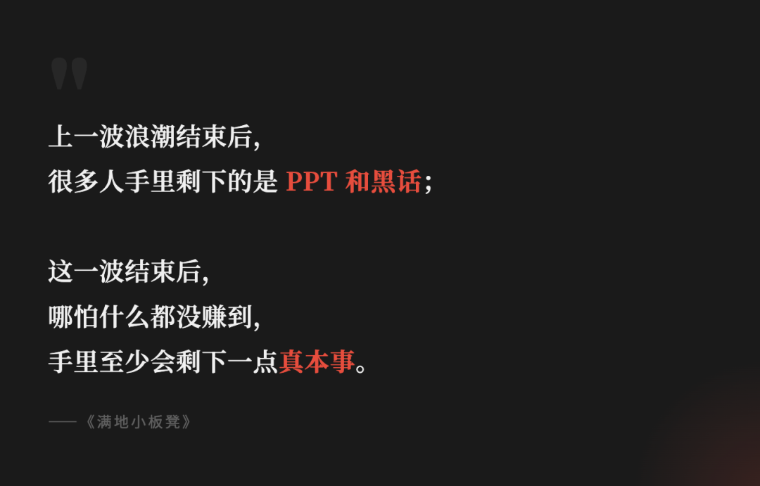 上一波浪潮结束后,很多人手里剩下的是 PPT 和黑话;这一波结束后,哪怕什么都没赚到,手里至少会剩下一点真本事。
