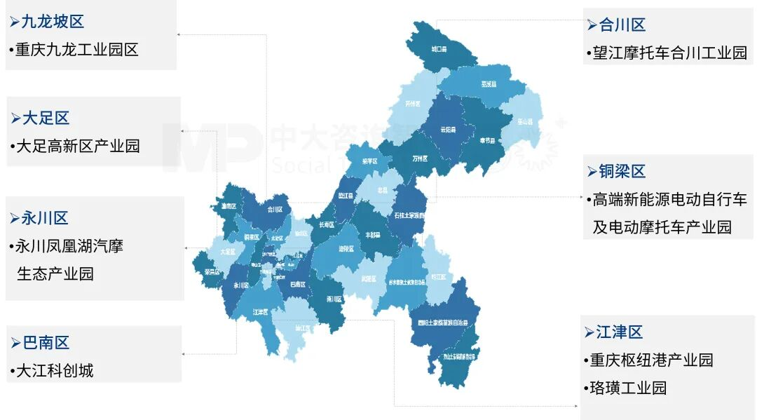 图9 重庆摩托车产业园区分布图,信息来源:中大咨询整理