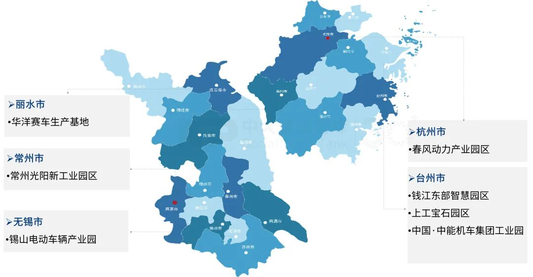 图11 江浙地区摩托车产业园区分布图,信息来源:中大咨询整理