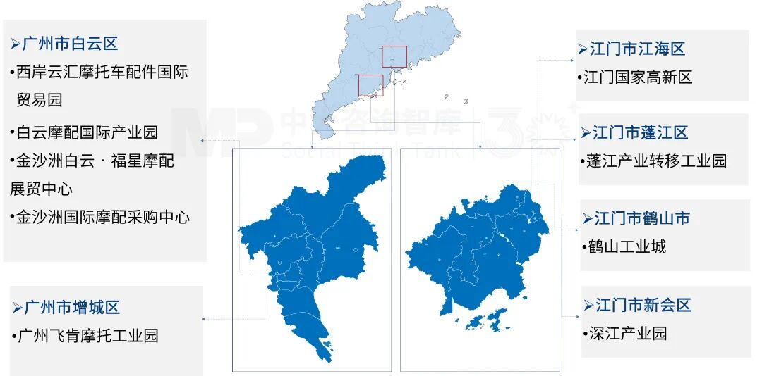 图10 广东摩托车产业园区分布图,信息来源:中大咨询整理