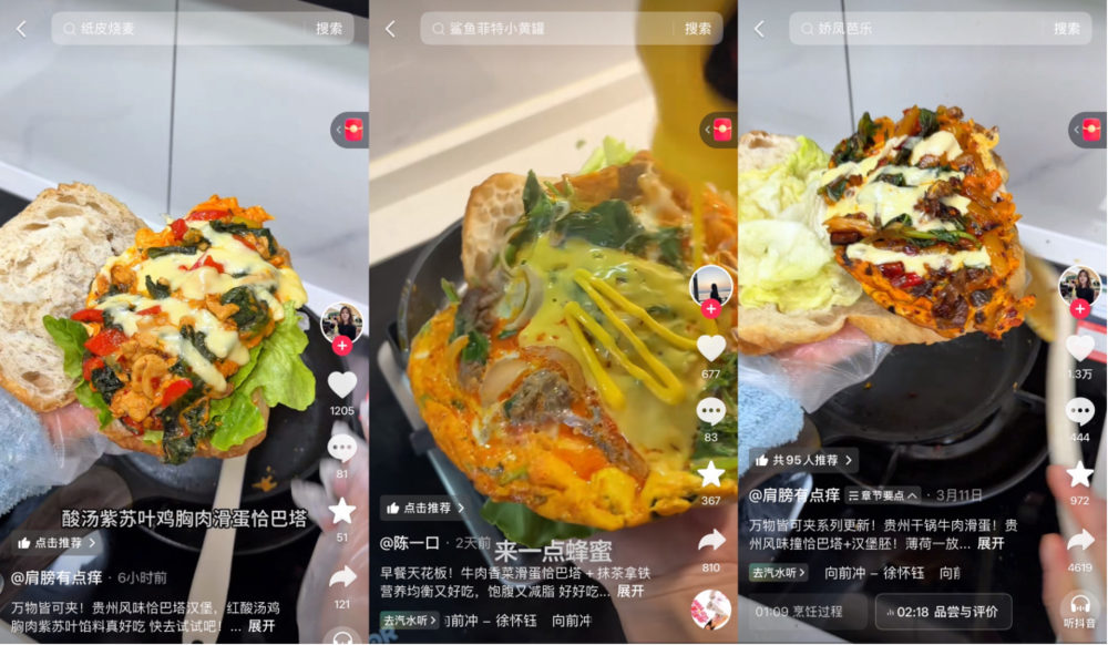 这种“中西合璧”的吃法成功引起了年轻人注意,有用户调侃“恰巴塔”由此正式进入“瑜伽裤时代”——因为它可以容纳万物。