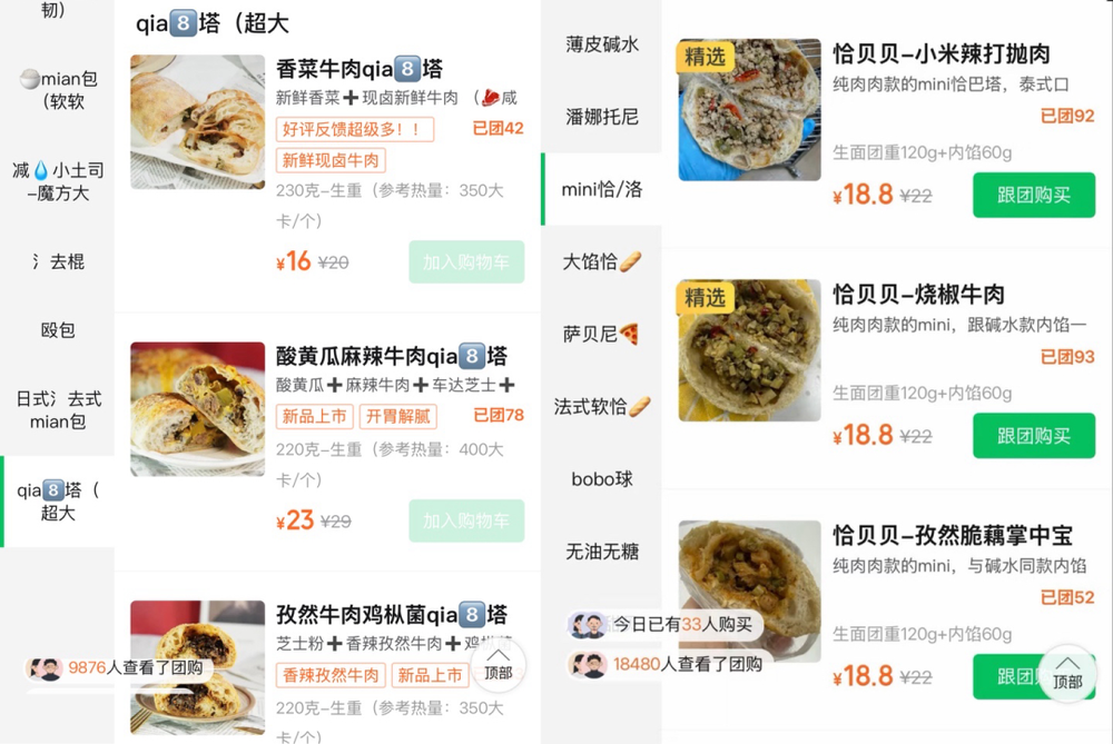 据红餐网观察,一些售卖恰巴塔产品的线上社区店铺,商家通过预售的方式提前开团,确认订单量后开始制作,有香菜牛肉馅的,有酸黄瓜麻辣牛肉馅的,还有孜然牛肉馅的,售价十几元到二十几元不等。
