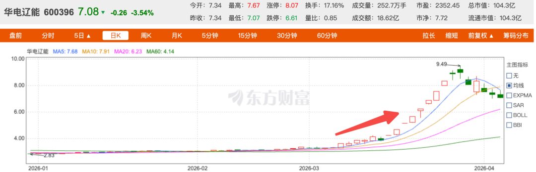 华电辽能3月涨了148%,9天拿了8个涨停板。