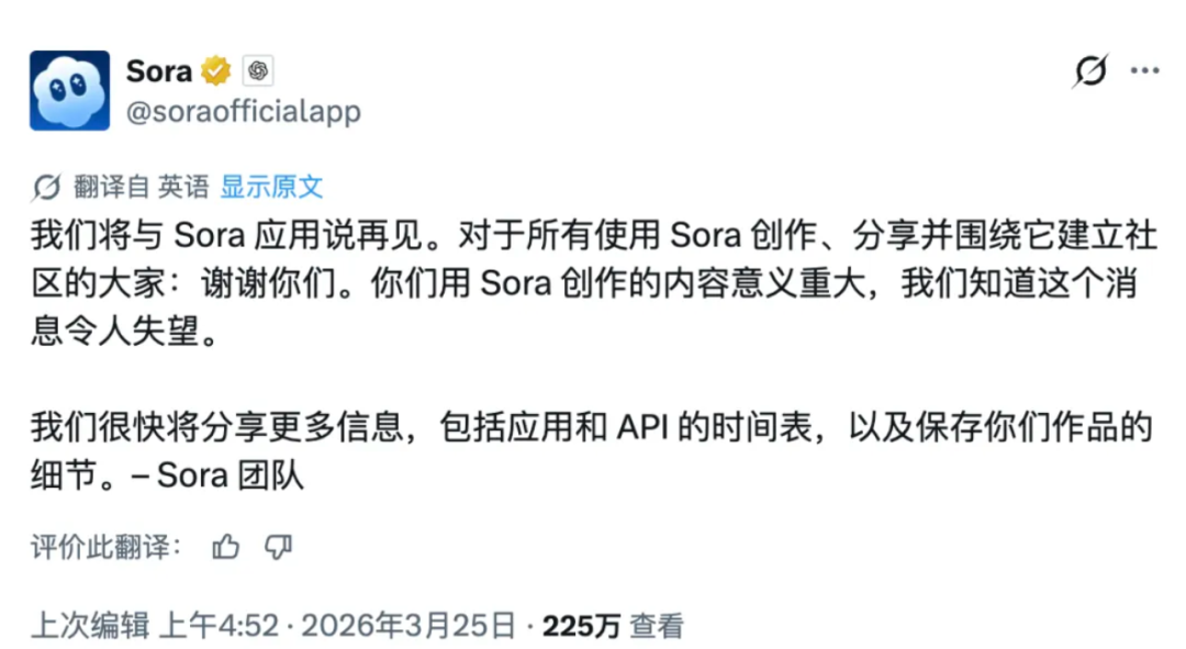 GPT-6 完成预训练后不到 24 小时,OpenAI 宣布关停 Sora。