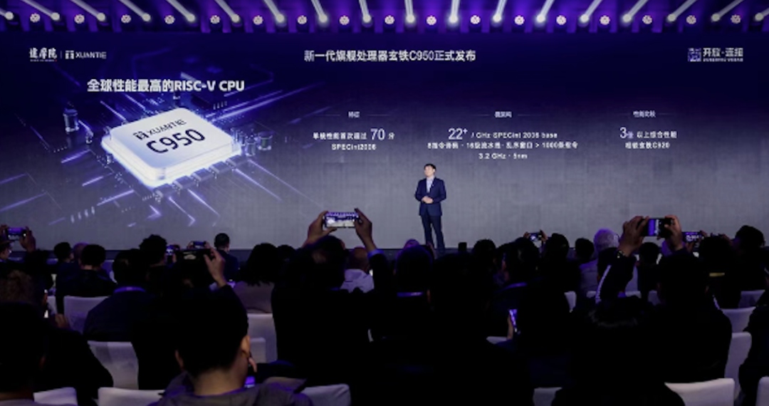 2026年3月,中国芯片产业迎来了一个密集的突破窗口。24日,阿里达摩院发布玄铁C950处理器,SPECint2006性能测试突破22分/GHz,首次在单芯片上原生支持千问30B等千亿参数大模型;26日,2026中关村论坛年会上,中国科学院发布“香山”开源高性能RISC-V处理器与“如意”操作系统,并联合中国移动、中国电信、腾讯、字节跳动等数十家单位,启动下一代“昆明湖”架构的联合研发。