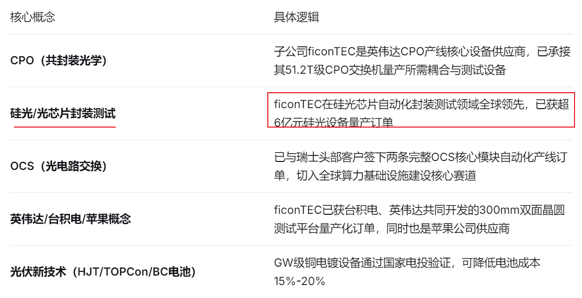光电子及半导体业务:通过2025年完成对ficonTEC的100%收购,切入全球领先的光电子器件自动化微组装、耦合与测试赛道。ficonTEC在光芯片、光模块的自动化封装测试领域处于全球领先地位,设备精度达5nm级,填补了国内亚微米级贴装系统的空白。