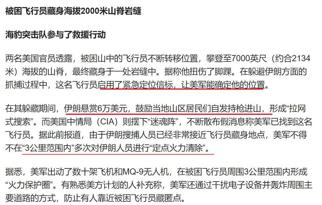 当地时间4月4日,美国总统特朗普在社交平台宣布,美军已从伊朗救出被击落的F-15E战斗机上的第二名飞行员。此前,这架美军双座战斗机被伊朗击落,机上有两名美军飞行员。其中一人很快就被美军救走,但另一名飞行员凭一把手枪和通讯设备,在伊朗军队搜捕和美军无人机轰炸中,于扎格罗斯山脉中藏身长达36小时。