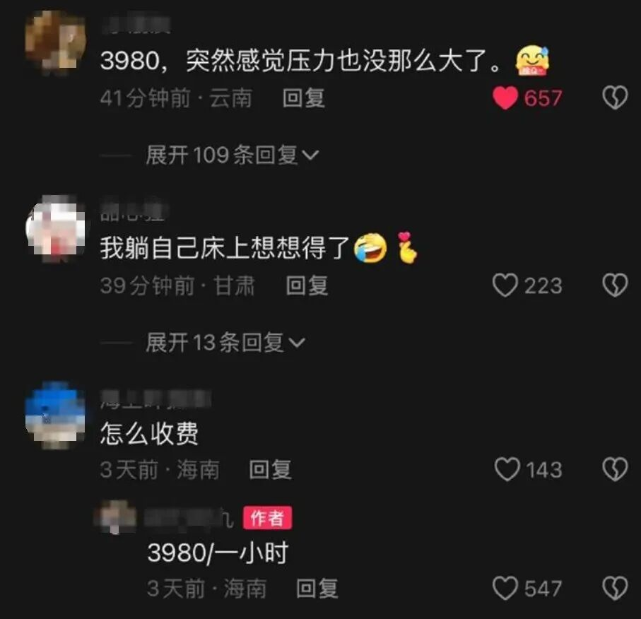 不过,八妹还发现一个问题,好多行业贴上“疗愈”标签后,价格翻倍往上涨。网友说,本来为了缓解焦虑睡个好觉找地方“疗愈”,看到价格后,反而多了一份“是否被智商税收割”的担忧。