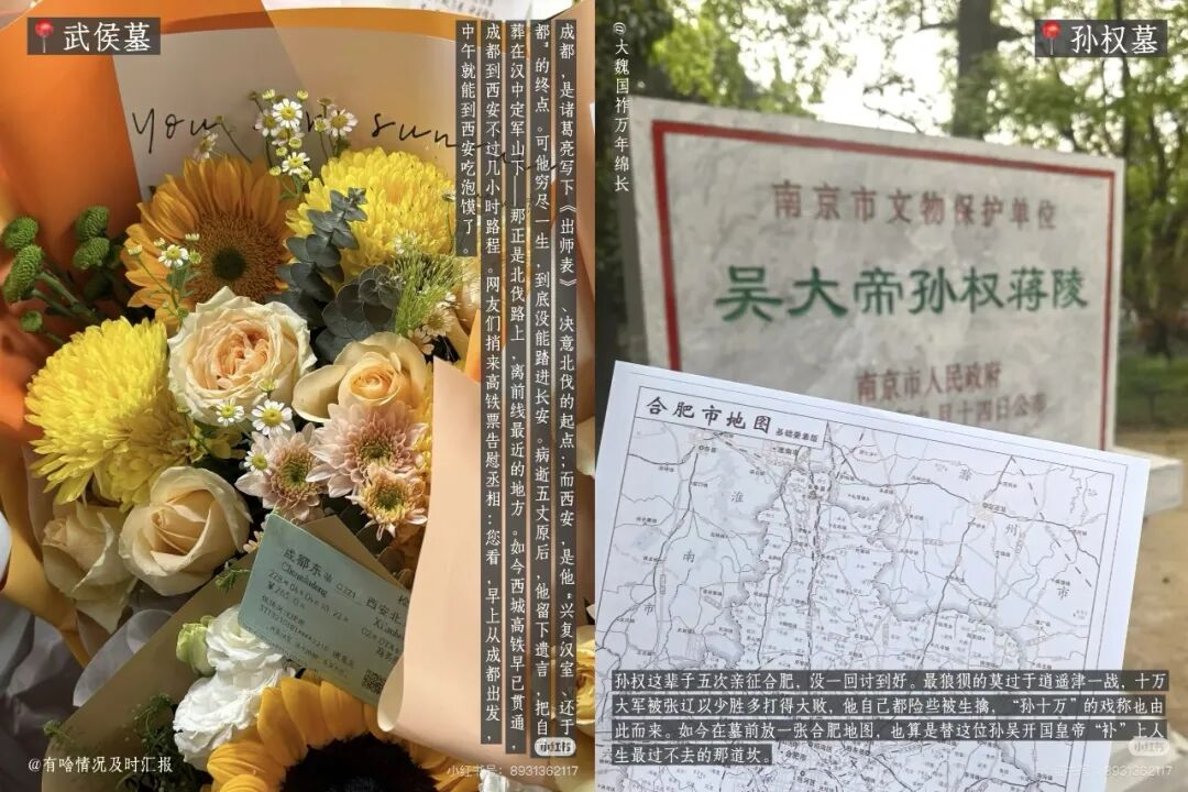 他们把历史人物从课本符号变成“精神知己”,用现代物品弥补古人遗憾:给诸葛亮送高铁票,附言“3小时圆北伐梦”;给孙权送合肥路牌,调侃“终于跨过逍遥津”。