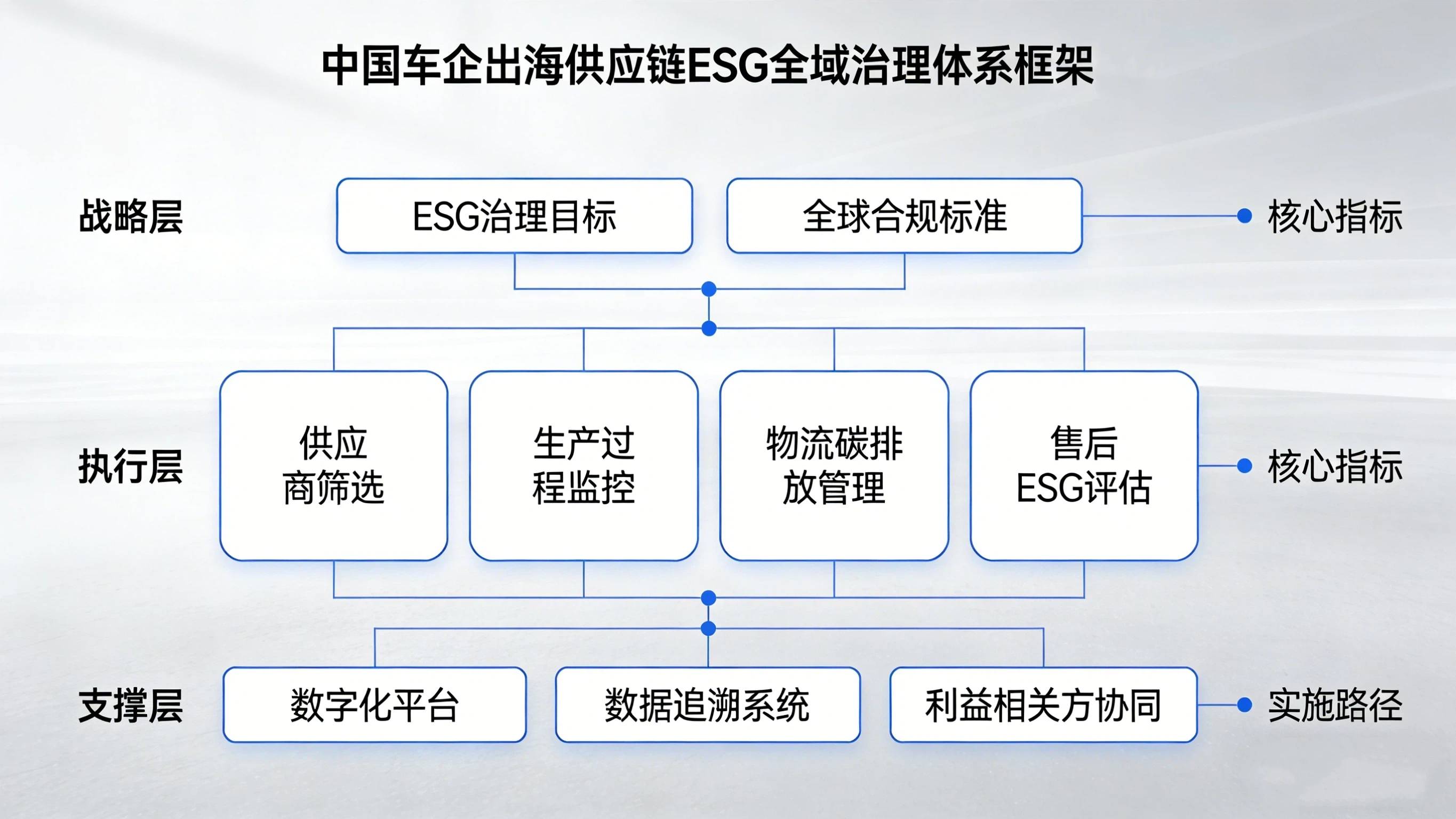 结合比亚迪与吉利的供应链治理实践,我们可以得出一个明确的判断:在全球ESG监管持续收紧的背景下,供应链ESG治理能力已成为车企出海ESG的核心竞争力,更是决定车企能否在全球市场站稳脚跟的关键。