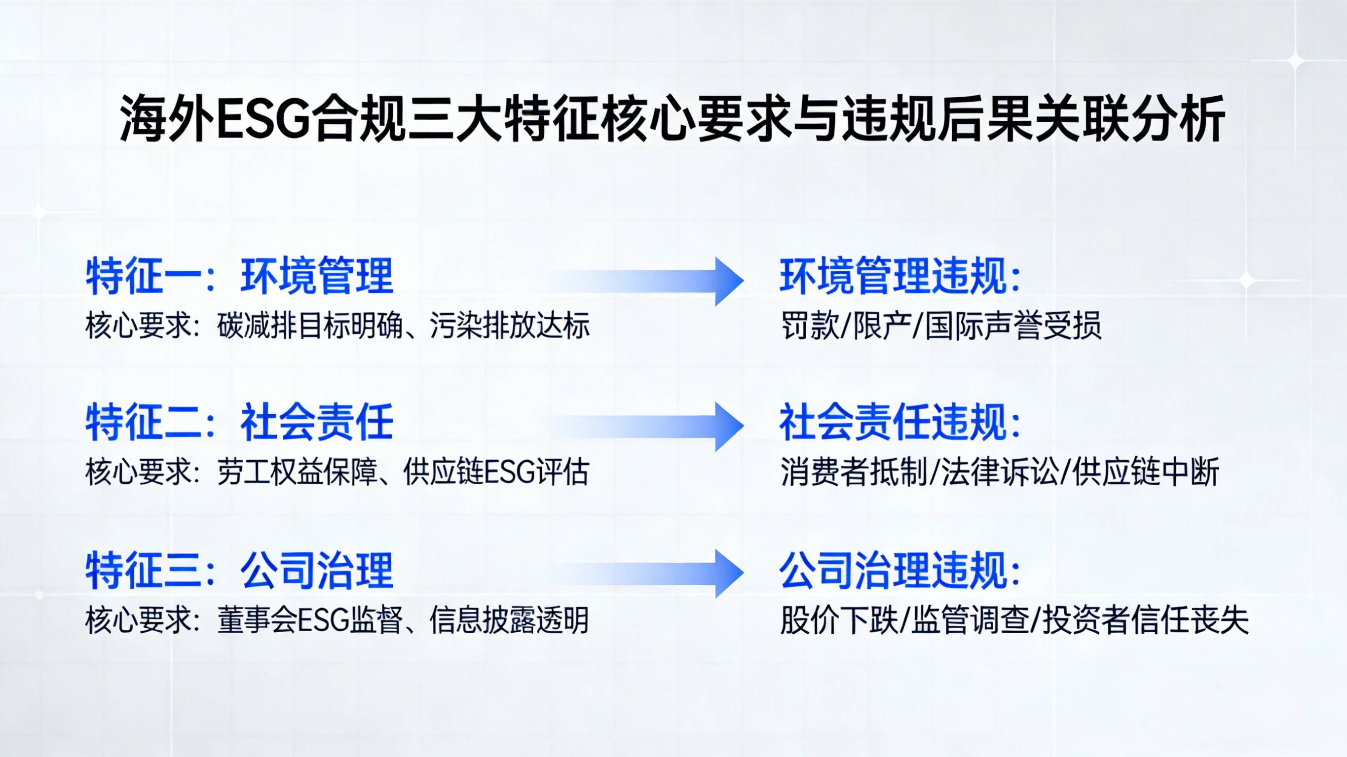 第一,充分理解海外ESG标准,将ESG相关法规与监管要求,纳入企业商业模式与运营管理的核心考量,作为营商环境分析的重要组成部分,确保企业运营与海外当地合规要求同频,从源头规避合规风险。